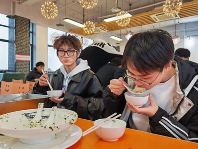 不久后,热气腾腾的饺子出锅分装,大家围坐在一起,品尝着亲手包的饺子,欣赏着互赠的对联与福字,分享着新年愿景,食堂内暖意融融、其乐融融。